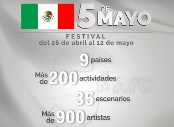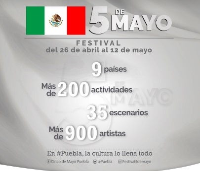 Puebla, Pue. El Gobierno del Estado de Puebla a través de la Secretaría de Cultura y Turismo, en conjunto con el H. Ayuntamiento de Puebla, a través del Instituto Municipal de Arte y Cultura, presentan las actividades artístico-culturales del Festival 5 de Mayo que se llevará a cabo del 26 de abril al 12 de mayo.