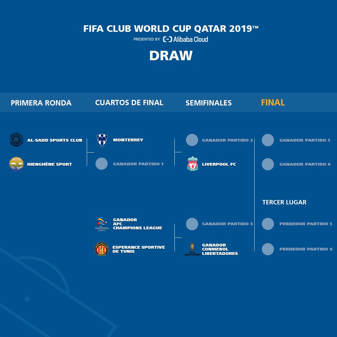 Mientras, el futuro campeón de la Copa Libertadores de la CONMEBOL tendrá como rival en su semifinal al vencedor del duelo entre el campeón asiático, aún por determinar también, y el Esperánce de Túnez, campeón africano.