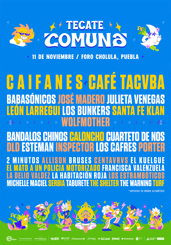 Festival Tecate Comuna, Caifanes y Café Tacuba como estelares en el Foro Cholula, Puebla, sábado, 11 de noviembre de 2023, desde las 12:00 P.M. Recta Cholula - Puebla 2417.