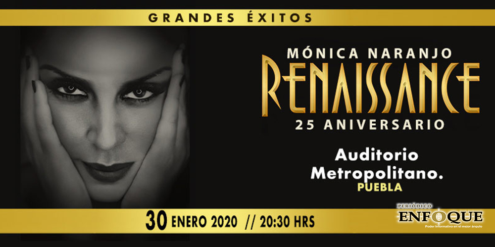 Puebla, Puebla, México. Mónica Naranjo se presentará con su “Renaissance tour” el jueves 30 de enero de 2020, Auditorio Metropolitano de la ciudad de Puebla a las 08:30 P.M.