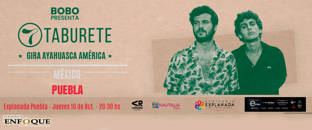 Puebla, Puebla, México. Taburete se presenta con su Gira Ayahuasca América el jueves 10 de octubre de 2019 en el Auditorio Explanada Puebla a las 08:30 P.M.