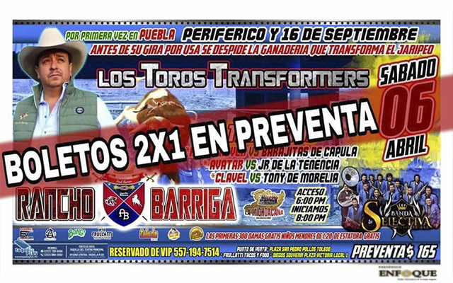 Los Toros Transformers, 6 de abril en Puebla, periférico y 16 de septiembre