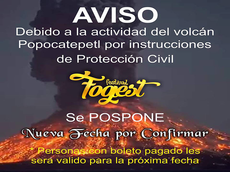 Se pospone Festival Fogest por actividad del Popocatépetl
