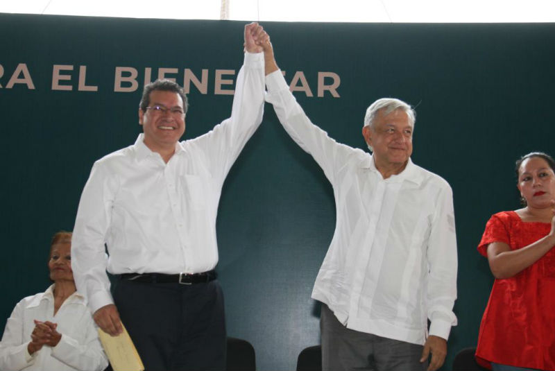Gobernador Marco Mena acompaña a AMLO en gira por Tlaxcala