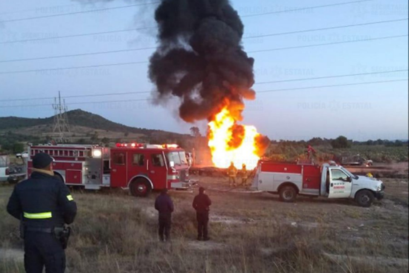 Resguardan toma clandestina de hidrocarburo que se incendió en Edomex