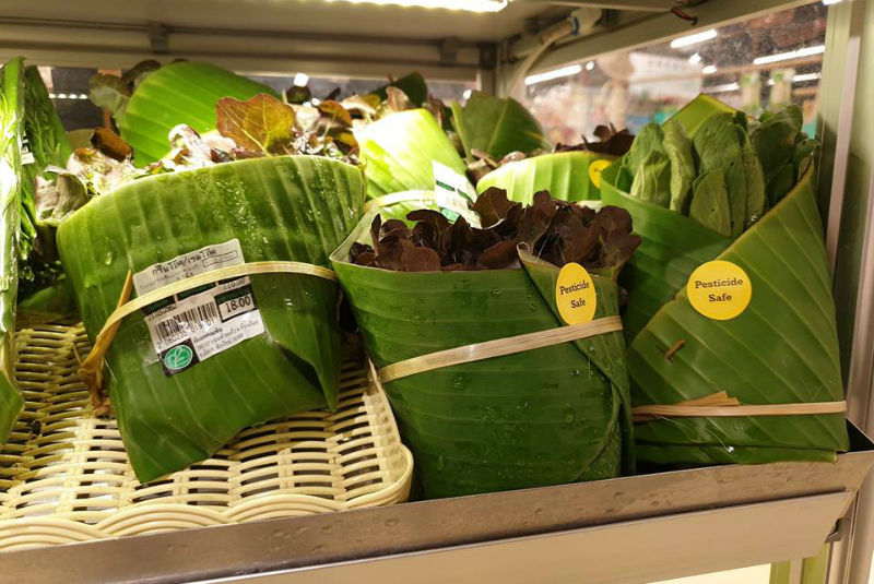 Supermercado sustituye las bolsas de plástico por hojas de plátano