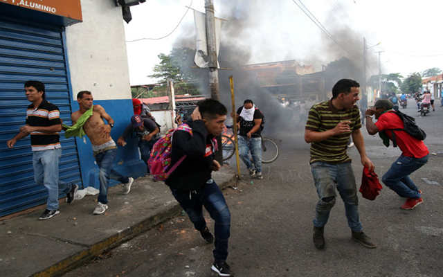 Militares venezolanos lanzan gases lacrimógenos a manifestantes en puente froterizo con Colombia