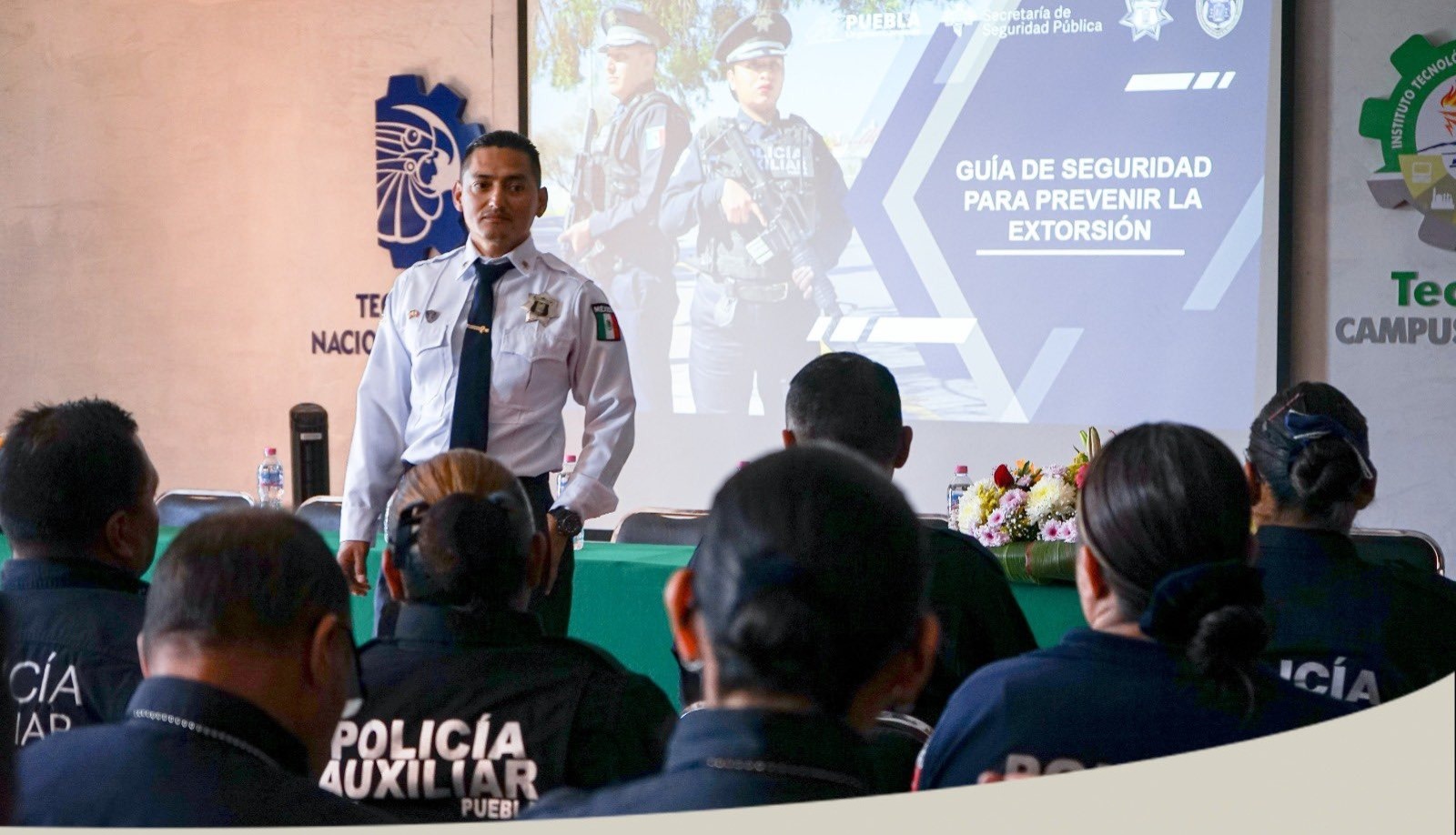 Siendo como sede el Instituto Tecnológico de Tepeaca, fue que la Dirección de Prevención del Delito y Vinculación e instructores de la Policía Auxiliar realizó dichos cursos en forma teórica y práctica, en donde estuvo presente la directora general de la coordinación, Erika Guzmán Granados, quien entregó constancias a los policías por su participación, así como reconocimientos a los capacitadores.