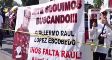 Karla López, hermana del desaparecido, acompañada de un grupo de familiares y amigos, se manifestó para exigir a las autoridades agilizar la búsqueda de su hermano.