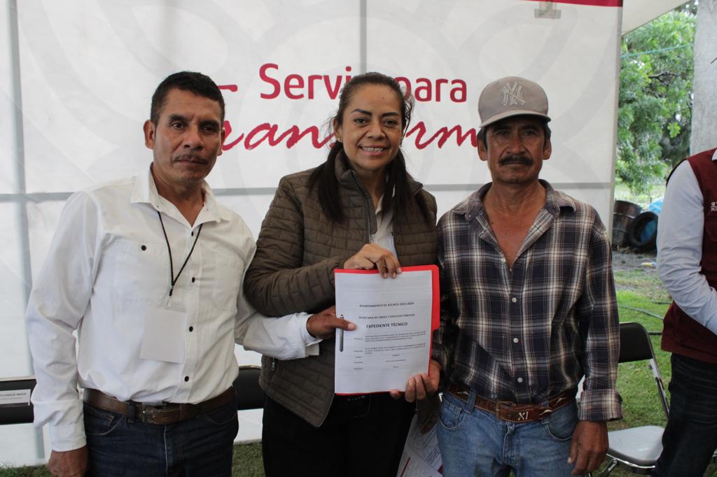 Por último, la munícipe regresó a la junta auxiliar de Metepec para atender obras que eran demandadas por sus habitantes desde hace más de 20 años y que beneficiarán a más de 3 mil 500 habitantes, como una chancha de usos múltiples, la cual estará acondicionada con bancas tradicionales y alumbrado público para la sana convivencia, así como la pavimentación con adoquín de la calle 5 de Febrero.