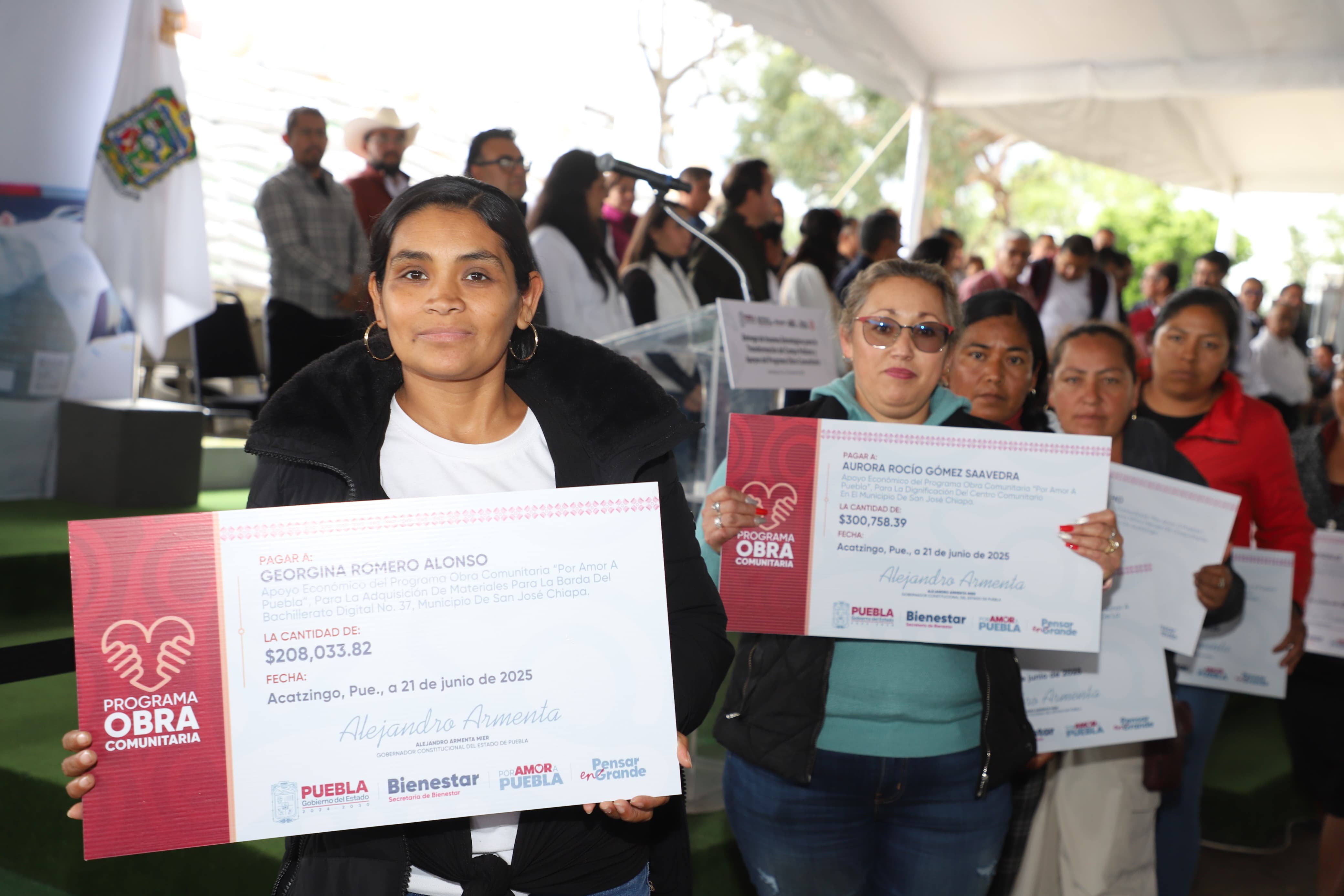 Finalmente, Lourdes Cuate Rosas, beneficiaria del Programa de Obra Comunitaria, mencionó que recibió aproximadamente 100 mil pesos para la restauración de la Capilla de San Jerónimo en Acatzingo. Mientras que María Cruz Albañil, originaria de Rafael Lara Grajales, dijo que el recurso que recibió se destinará para mejorar la Telesecundaria Benito Juárez y que los alumnos estudien en condiciones dignas.