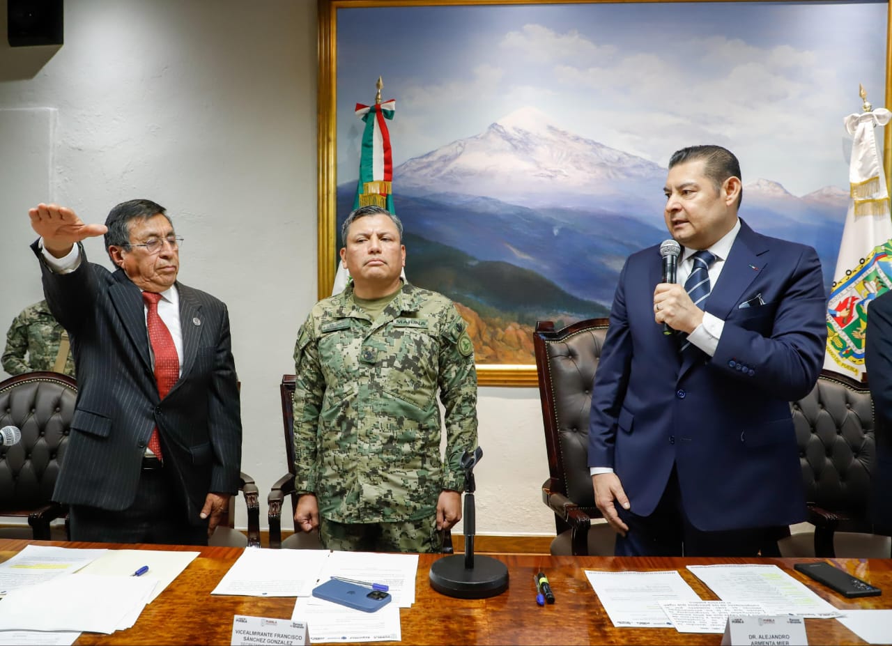 Tepeaca, Pue.- El gobernador del estado de Puebla, Alejandro Armenta Mier tomó protesta al tepeaquense y expresidente municipal, Humberto Eloy Aguilar Viveros como titular del Consejo Estatal de Coordinación del Sistema Nacional de Seguridad Pública (CECSNSP) en Puebla.