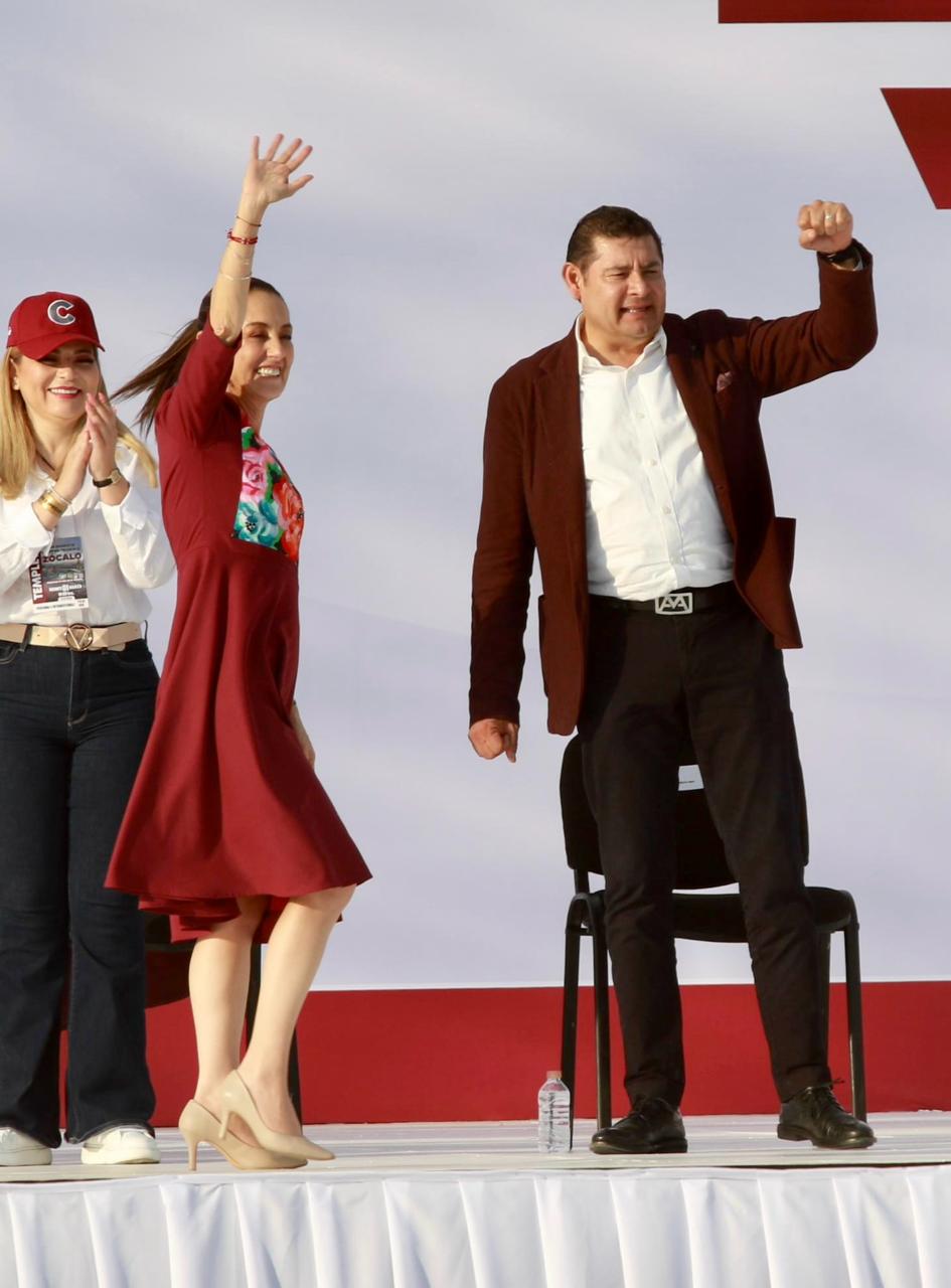 Ciudad de México. En un zócalo repleto de militantes y seguidores de Morena y los partidos que conforman la megacoalición, el coordinador de los Comités de Defensa de la 4T de Puebla Alejandro Armenta acompañó a la candidata presidencial, la Dra. Claudia Sheinbaum.