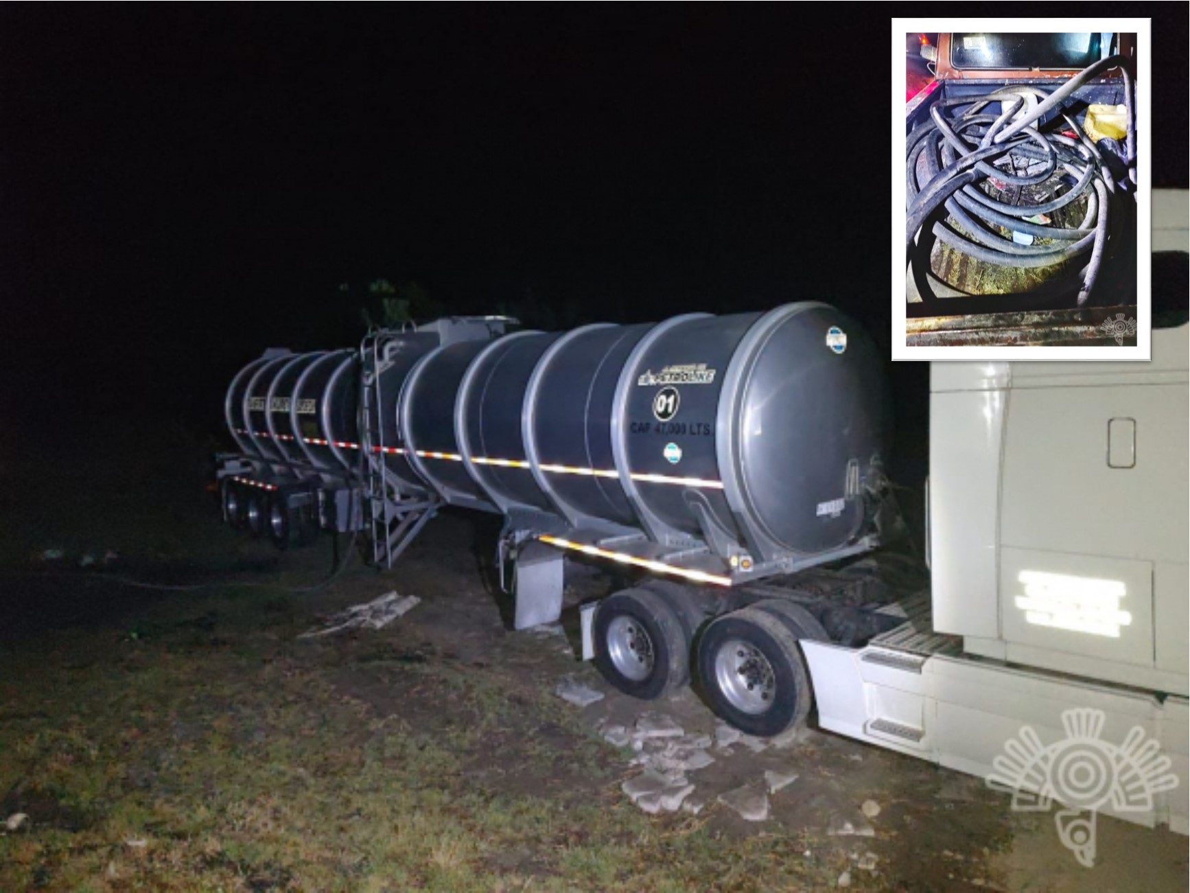 Los uniformados fueron informados de una toma clandestina, por lo que, al llegar al camino de terracería que comunica a Cuapiaxtla de Madero con la carretera federal a Acajete, ubicaron un tactocamión tipo pipa conectado a una toma clandestina de petróleo.