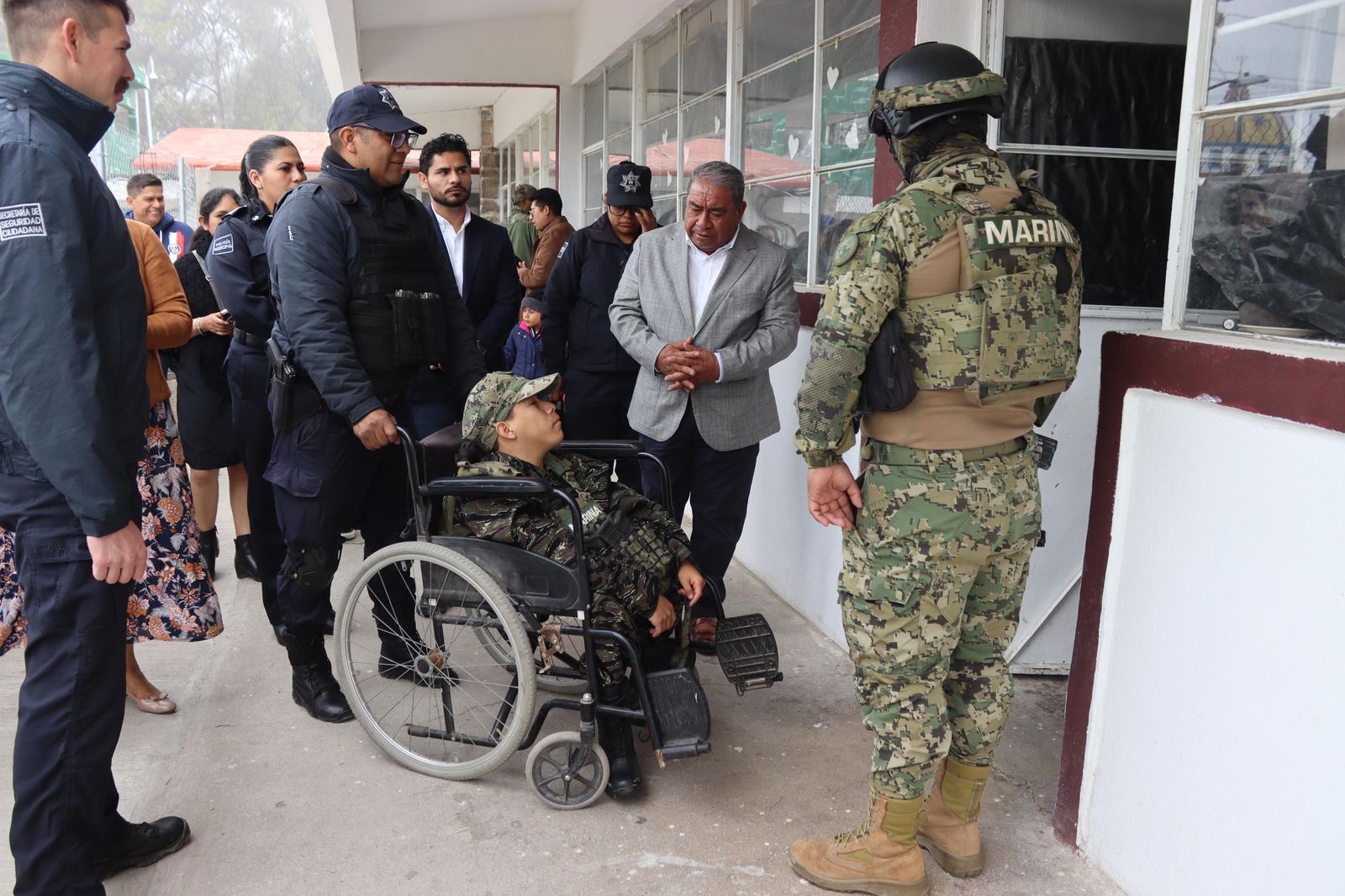 A las 8:00 am, Marcos, vestido con un uniforme con características militares, participó en un pase de lista simbólico junto a los elementos de la Secretaría de Seguridad Ciudadana de Amozoc. Luego, fue acompañado en un recorrido por las instalaciones de la base de operaciones de la Marina en Amozoc, donde pudo vivir la experiencia de un día como policía honorario.