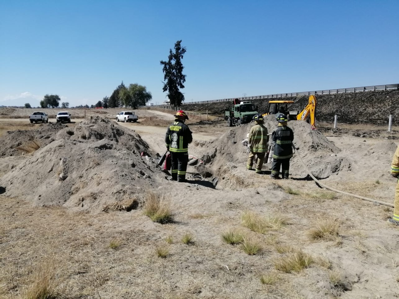 Al lugar arribaron cuerpos de emergencia como Bomberos y personal de Protección Civil del estado para controlar la fuga de gas LP misma que fue localizada a 60 metros de la autopista en cultivos de la población antes mencionada, por lo que el área fue acordonada por Policía Municipal, Guardia Nacional y Seguridad Física de Pemex.