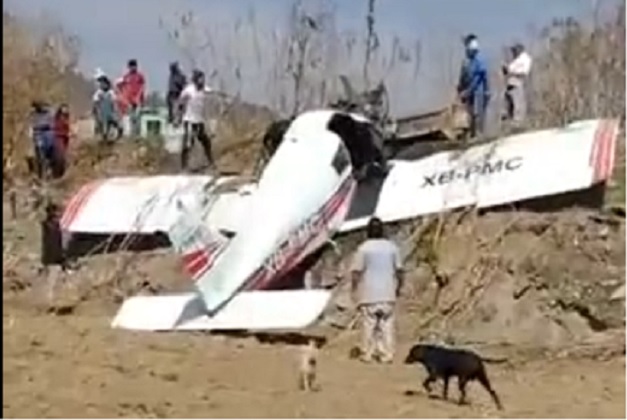 Se trata de una aeronave con matrícula XB-PMC, que cayó obre un montículo de tierra, contiguo a tenernos de labor.
