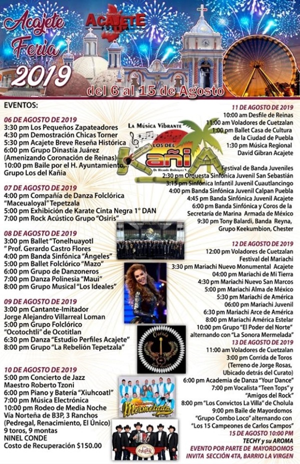 Entre los grupos y actividades culturales que amenizarán la feria de Acajete son: