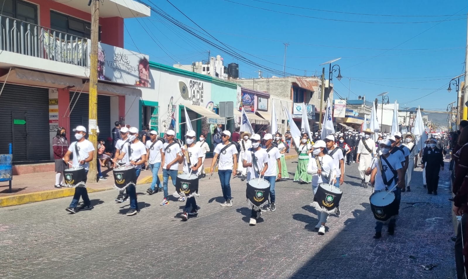 Tepeaca, Pue.-Este martes, con la participación de escuelas (de diferentes niveles educativos), así como de comisariados ejidales del municipio y autoridades municipales, se llevó a cabo el desfile conmemorativo del 112 Aniversario del inicio de la Revolución Mexicana de 1910.