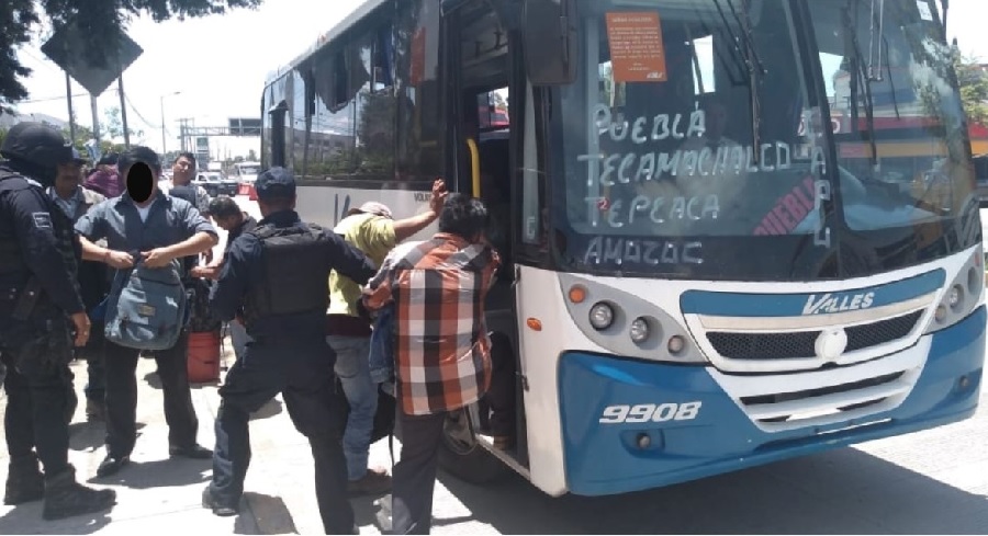 Amozoc, Puebla. Policía Municipal Preventiva de Amozoc continúa implementando el operativo "Pasajero Seguro", con la finalidad de detectar instrumentos o sustancias prohibidas en el trasporte público.