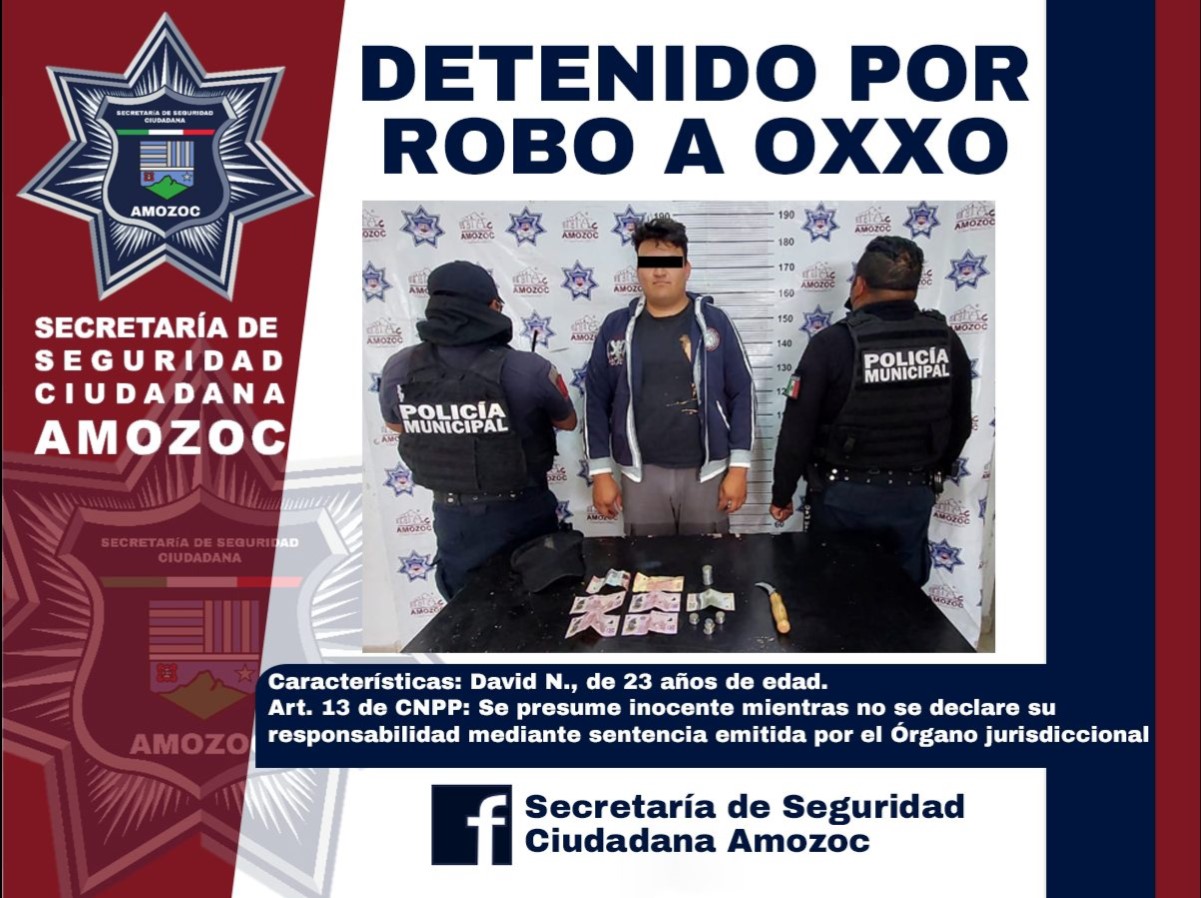 Amozoc, Pue- A través de un comunicado de la Secretaría de Seguridad Ciudadana de Amozoc informó que detuvo a un sujeto que presuntamente se dedica asaltar tiendas de conveniencia Oxxo en Amozoc.