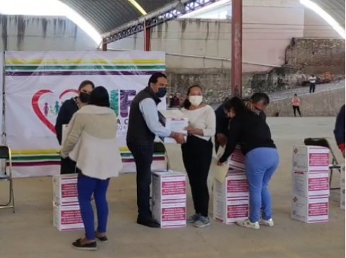 Tepeaca, Pue.- Con el objetivo de atender a las zonas vulnerables del municipio de Tepeaca, el sistema DIF municipal que preside Rebeca Sánchez González con apoyo del Presidente Municipal, José Huerta Espinoza realizaron la entrega de programas alimentarios a beneficiarios correspondientes a PAMEL, Rescate Nutricio, Discapacidad y Adulto Mayor.