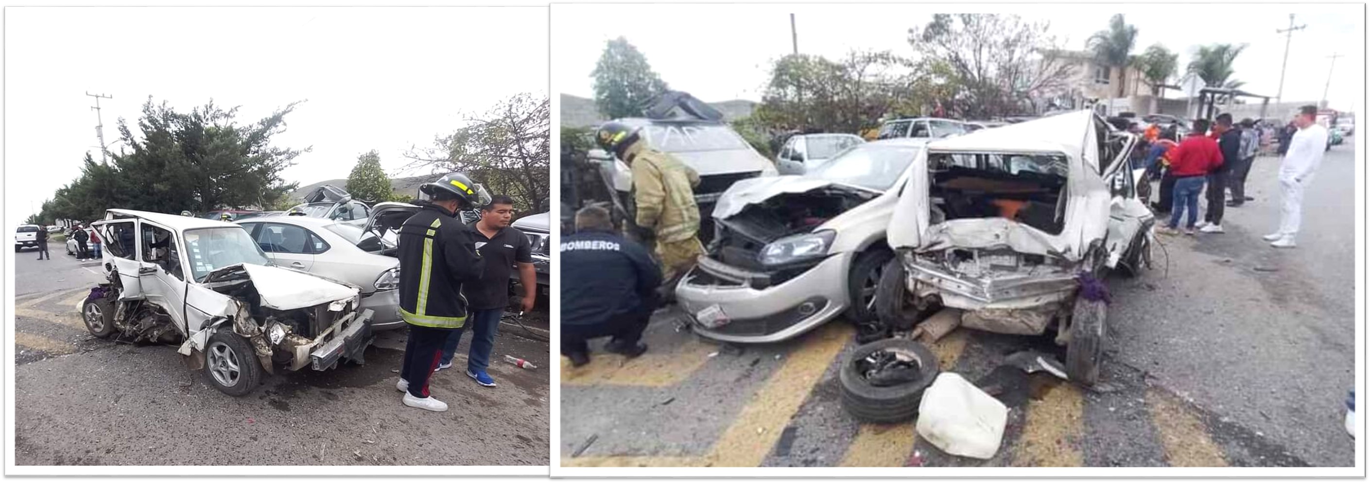 El hecho se registró este lunes sobre la citada vialidad, derivado de la falta de precaución de los conductores lo que ocasión una carambola entre dos camionetas y un vehículo tipo sedán, a la altura de unos topes recién colocados en aquella población, lo que dejó dos personas lesionadas.