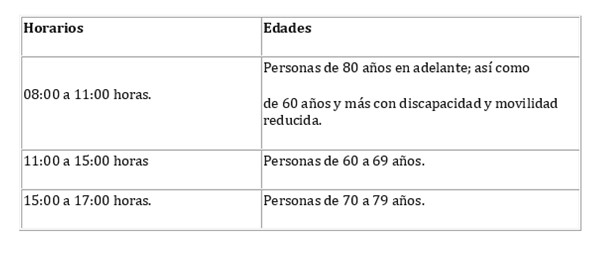 La Secretaría de Salud informó que los adultos mayores que recibirán la primera o en su caso única dosis, deberán ingerir alimento antes de asistir a los puntos de inmunización; en caso de estar bajo tratamiento médico no suspenderlo, debido a que no hay contraindicación para recibir el biológico.