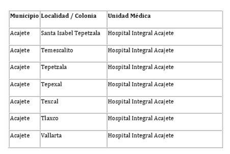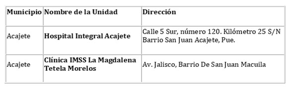 Acajete, Pue.- De manera coordinada, la SEDENA, Bienestar, ISSSTE, IMSS, ISSSTEP y los Servicios de Salud informan que del 19 al 21 de abril se llevará a cabo la primera etapa de vacunación masiva para adultos mayores contra la COVID-19 en el municipio de Acajete.