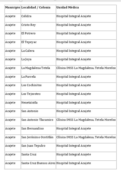 Los habitantes deberán localizar la unidad médica y llevar la documentación solicitada, respetando la fecha asignada, de acuerdo con la letra inicial de su primer apellido, así como el horario que corresponda a su edad.