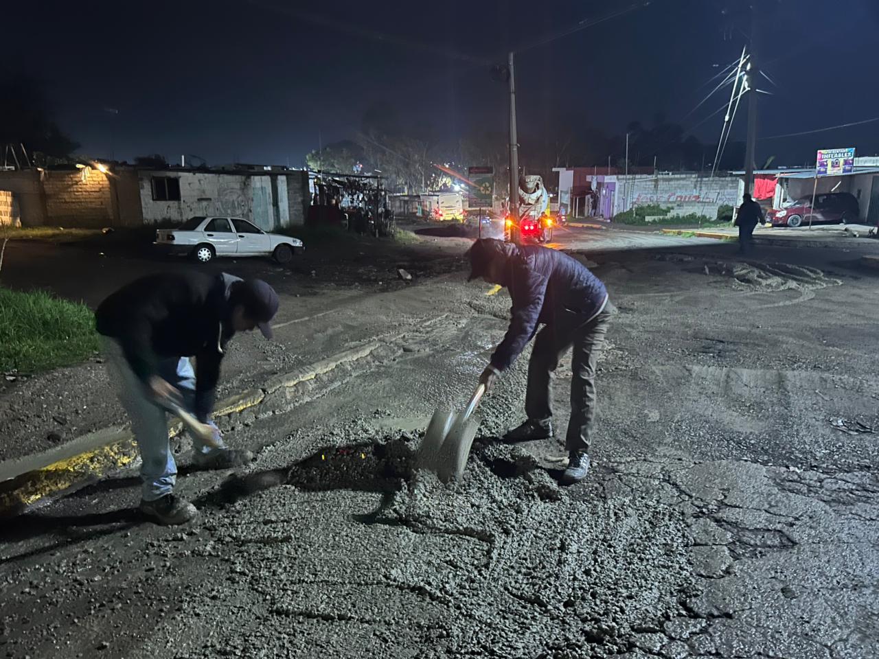 Amozoc de Mota. Con la finalidad de mantener en óptimas condiciones las calles y garantizar la seguridad de las y los ciudadanos, el Ayuntamiento de Amozoc 2024-2027 que encabeza el presidente municipal Severiano de la Rosa Romero, lleva a cabo labores de bacheo nocturno en diferentes puntos del municipio.