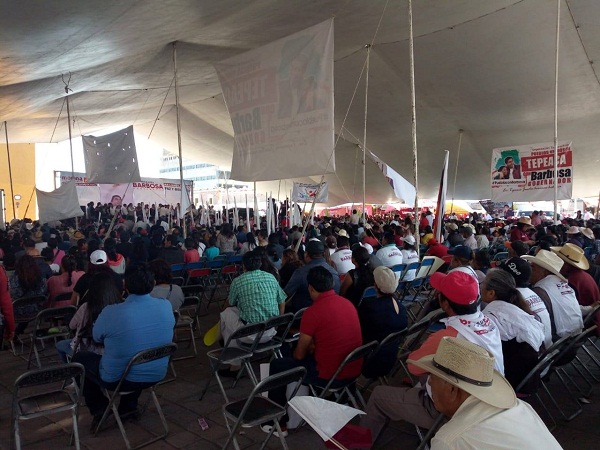 Tepeaca, Puebla. Ante la presencia de simpatizantes de Morena de la región de Tepeaca, Tecali, Cuautinchan, Los Reyes de Juárez, Huixcolotla, Mixtla y Santo Tomas Hueyotlipan, Luis Miguel Barbosa Huerta, candidato la gubernatura de Puebla aseguró que “el Tsunami de los poblanos en esta campaña ya nadie lo detiene”.