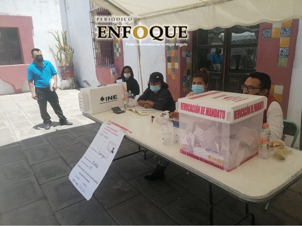 Tepeaca, Pue.- Con una afluencia considerable de votantes, desde temprana hora ciudadanos acudieron a las casillas electorales correspondientes para emitir su sufragio sobre la continuidad o revocación de mandato del Presidente de los Estados Unidos Mexicanos.