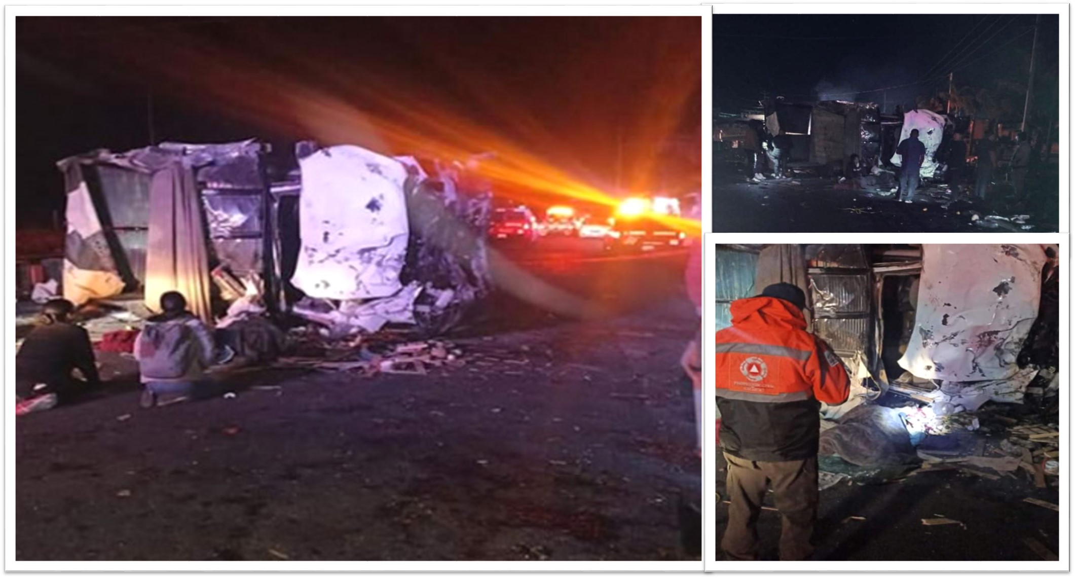 Según el primer reporte, señala que el hecho se registró la noche del pasado domingo cuando una camioneta blanca con placas de circulación XB-89994 de Tlaxcala, circulaba sobre la carretera federal rumbo a Tehuacán en la que viajaban cuatro personas y trasladaba frutas y verduras, pero debido al exceso de velocidad volcó a la altura del autódromo Miguel E. Abel en Amozoc.