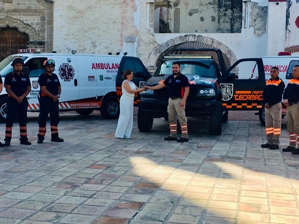 Tecamachalco, Puebla. Este miércoles, la presidenta municipal de Tecamachalco, Marisol Cruz García hizo entrega de un vehículo de respuesta inmediata a personal de Protección Civil Municipal.