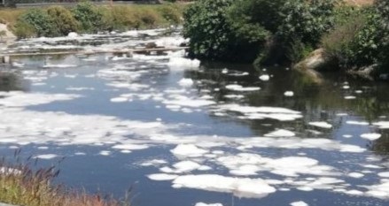 Según ambientalistas la espuma que cubre parte de la presa es una mezcla de fosfato y residuos contaminantes y es catalogada como de riesgo.