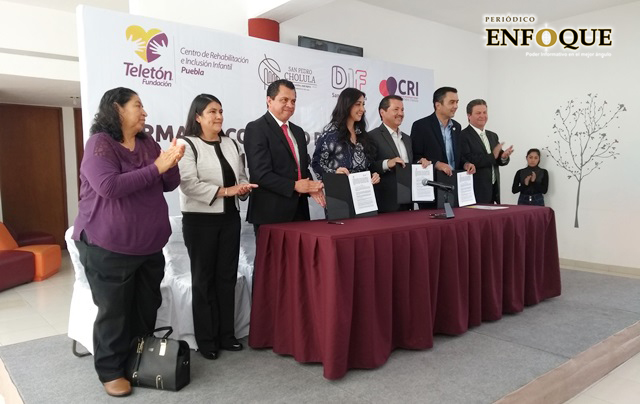 San Pedro Cholula, Pue. El ayuntamiento en turno y el DIF municipal firmaron un convenio de colaboración con el Centro de Rehabilitación e Inclusión Infantil Teletón Puebla (CRIT), con el objetivo de dar atención a las personas con alguna discapacidad en esta jurisdicción.