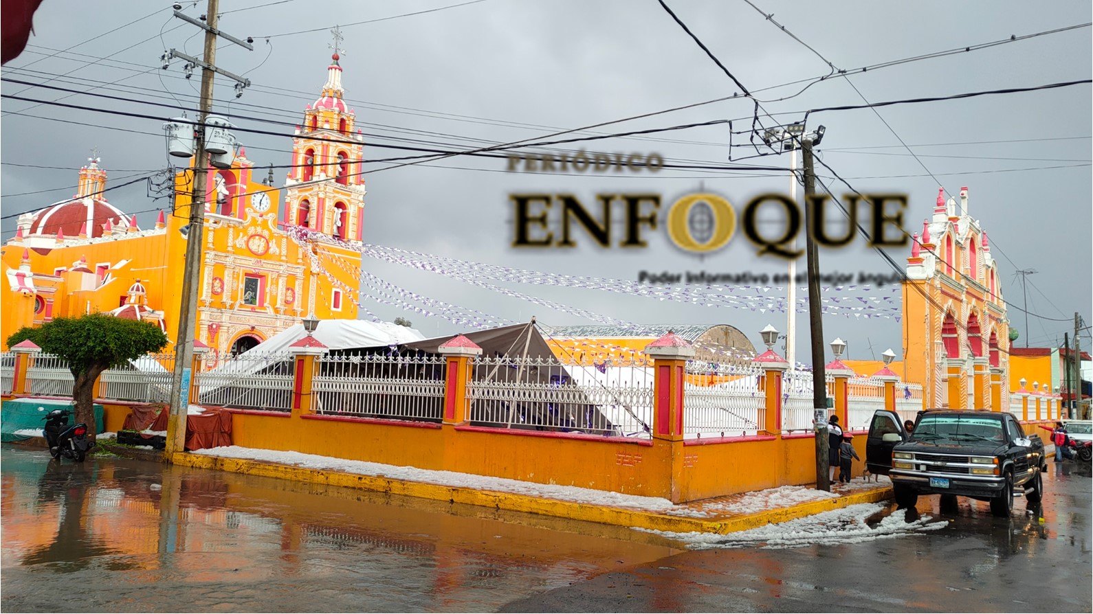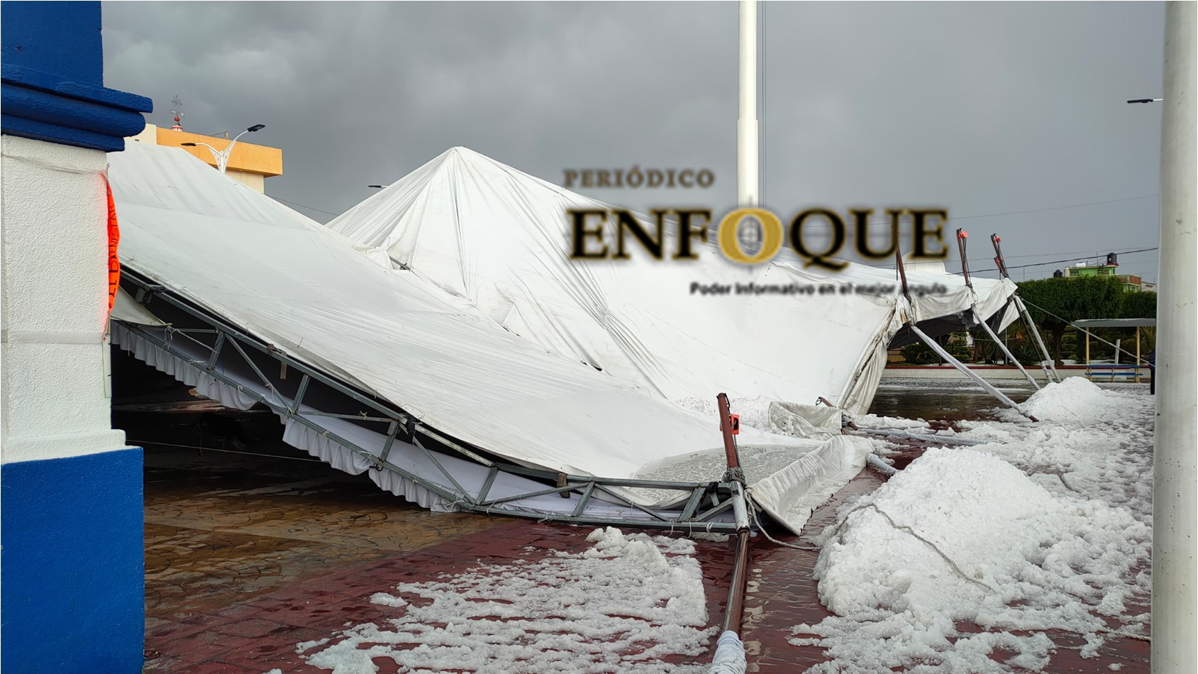 Los Reyes de Juárez, Pue.- Este jueves se registró una fuerte granizada en el municipio de los Reyes de Juárez, provocó inundaciones en viviendas, calles y ejidos, el granizo venció el domo que cubría la explanada municipal y otro en la iglesia; ambos casos no hubo personas lesionadas solo daños materiales.