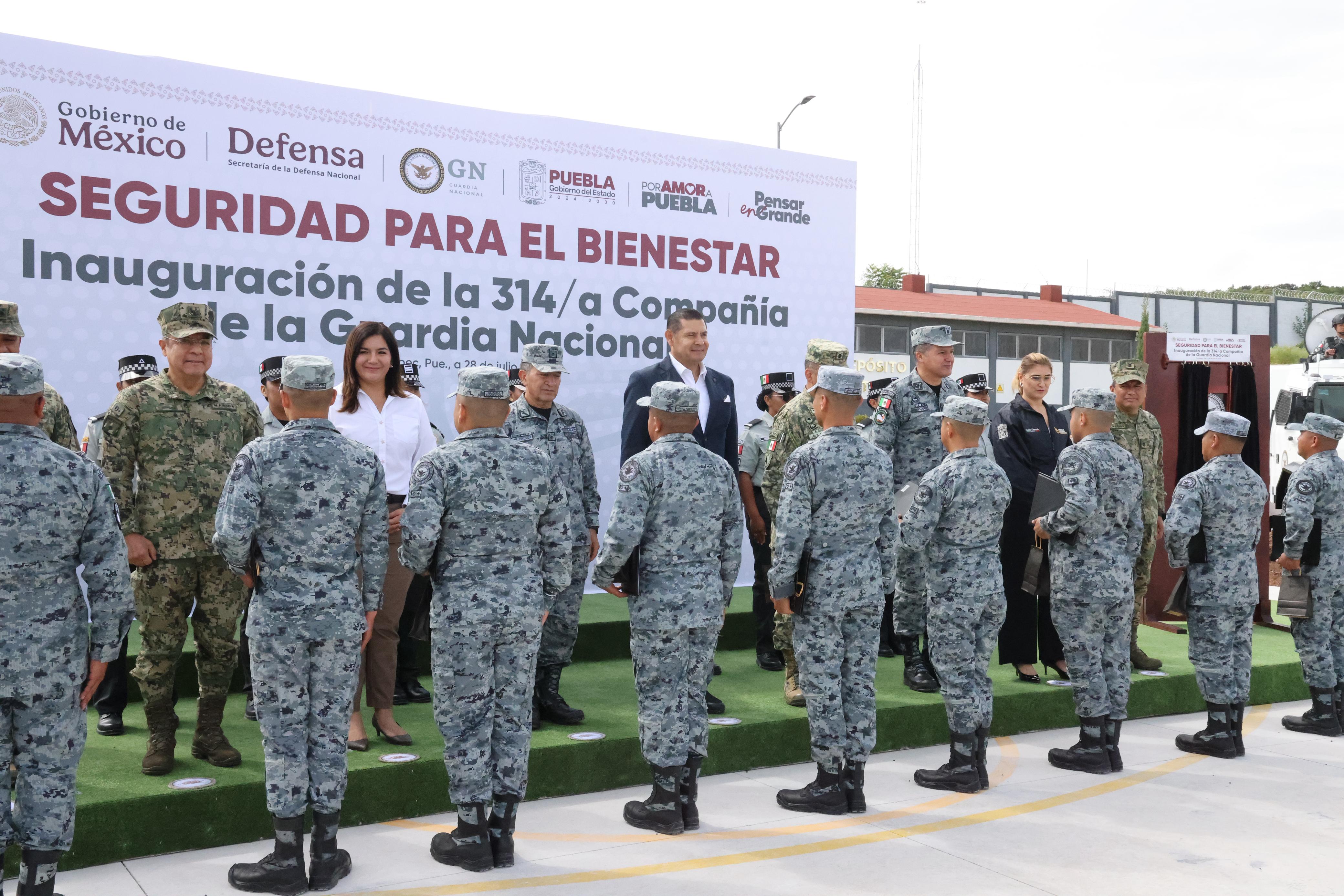 Durante la ceremonia, el coordinador estatal de la GN en Puebla, general de brigada de Estado Mayor, Vicente Javier Mandujano Acevedo, destacó que esta fuerza federal ha logrado consolidarse como una institución permanente y profesional, integrada por más de 125 mil elementos desplegados en todo el país. La creación y fortalecimiento de compañías como la 314ª compañía refuerzan la presencia institucional y permiten acercar la seguridad a las comunidades.