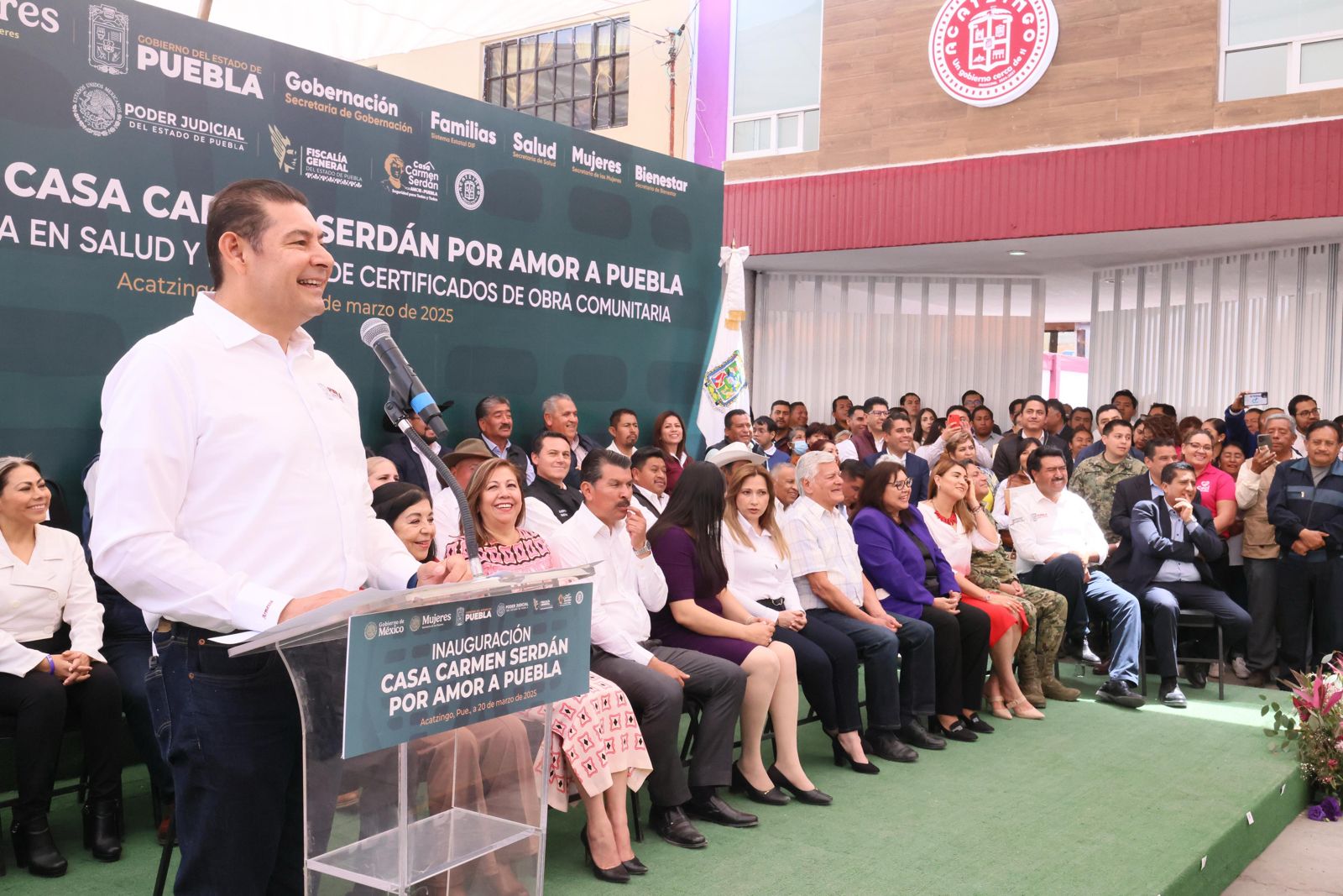 Acatzingo, Pue.- En su día 96 como gobernador del estado de Puebla, Alejandro Armenta Mier junto con su esposa Ceci Bonilla, presidenta del sistema estatal del Desarrollo Integral de la Familia (SEDIF), inauguró la octava “Casa Carmen Serdán” en el municipio de Acatzingo, espacio que será un aliado para las mujeres y el inmueble es una red de protección integral, jurídica y económica, donde los tres poderes atienden a la población.