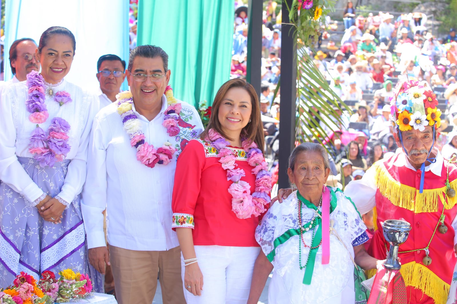ATLIXCO, Pue.- Para mantener y preservar las tradiciones culturales de esta región del estado, integradas por danza, música, olores, colores y rituales, el gobernador Sergio Salomón y la señora Gaby Bonilla, presidenta honoraria del patronato del SEDIF, encabezaron el Huey Atlixcáyotl 2023, la principal fiesta de este municipio que se celebra el último domingo de septiembre en el Cerro de San Miguel.