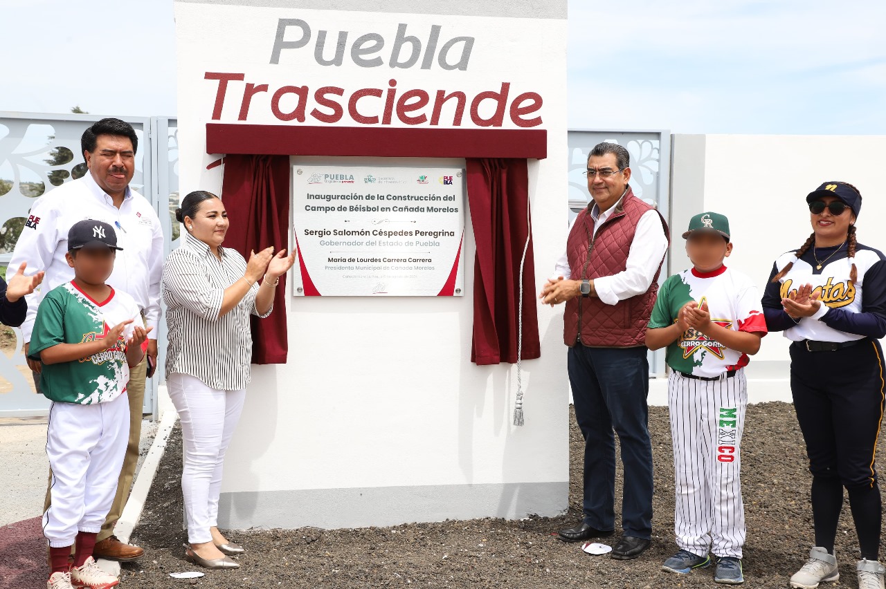 Cañada Morelos, Pue.- El gobernador del estado de Puebla, Sergio Salomón Céspedes Peregrina presidio junto con autoridades municipales, la inauguración de la construcción del campo de béisbol “Los Chopos” en el municipio de Cañada Morelos, el cual pretende impulsar la práctica del deporte y el sano esparcimiento en la sociedad, así como para promover encuentros familiares.