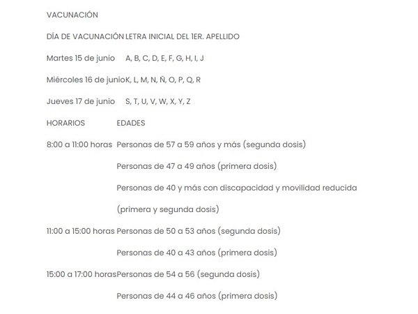 Las poblanas y poblanos habitantes de las demarcaciones antes mencionadas, que están entre los grupos de edad de 40 a 49 años, así como embarazadas, recibirán la primera dosis; mientras que a las personas de 50 años y más les aplicarán la segunda. Para desarrollar este proceso, las instituciones que participan en la Brigada Correcaminos (SEDENA, Bienestar, ISSSTE, IMSS, ISSSTEP y Servicios de Salud) definieron 62 puntos de vacunación.