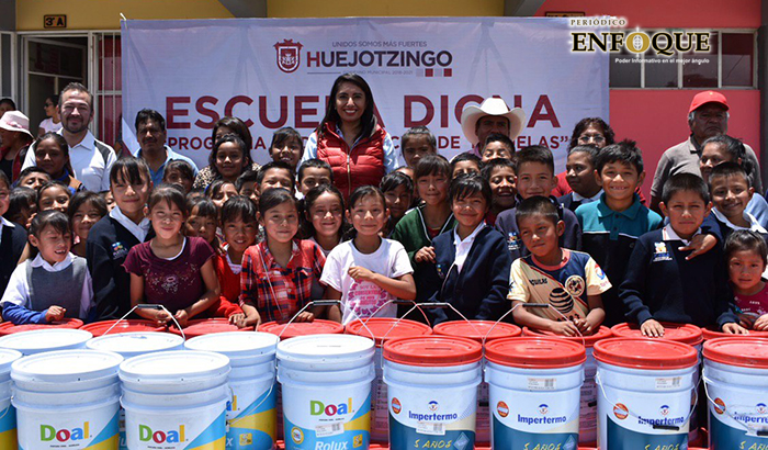 La alcaldesa compartió que en esta etapa se entregarán 4 mil 560 litros de impermeabilizante y mil 653 litros de pintura que servirán para mejorar la imagen de los centros educativos de la cabecera y de las juntas auxiliares del municipio, ya que mediante este se entregan materiales para logrará un adecuado mantenimiento a los inmuebles.
