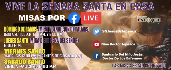 Tepeaca, Pue. Ante la contingencia Sanitaria del Covid-19 el Santuario del Niño Doctor de Tepeaca se encuentra cerrado, por lo que invita a sus fieles católicos a vivir con tranquilidad la Semana Santa desde los hogares y siguiendo las misas por sus redes sociales.