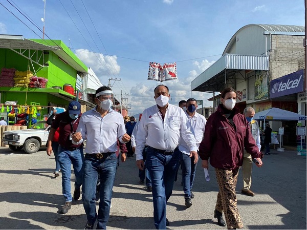 Con los integrantes de los Comités de Cultura Sanitaria de ambos centros de abasto, y la coordinadora de Protección Civil Estatal, Ana Lucía Hill Mayoral, el funcionario celebró la corresponsabilidad de los comerciantes para mantener las medidas de prevención por Covid-19, adaptándolas a sus propias actividades comerciales para continuar trabajando y evitar un incremento en los contagios.
