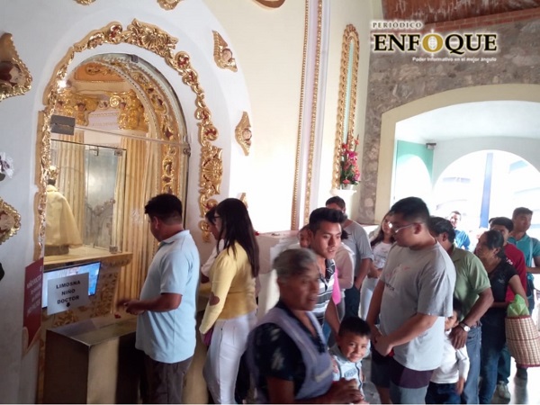 Tepeaca, Puebla. Aunque su fiesta es el 30 de abril, miles de peregrinos visitan el Santuario del Santo Niño Doctor de Tepeaca, donde feligreses provenientes del estado, país e incluso del extranjero son participes de las actividades eclesiásticas.