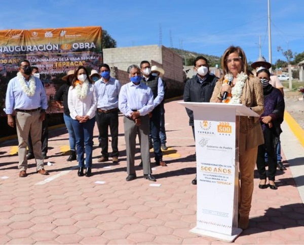 Tepeaca, Pue. La Secretaria de Economía en el Estado, Olivia Salomón acompañó al alcalde de Tepeaca, Sergio Salomón Céspedes Peregrina a inaugurar obras para las comunidades del municipio de Tepeaca.