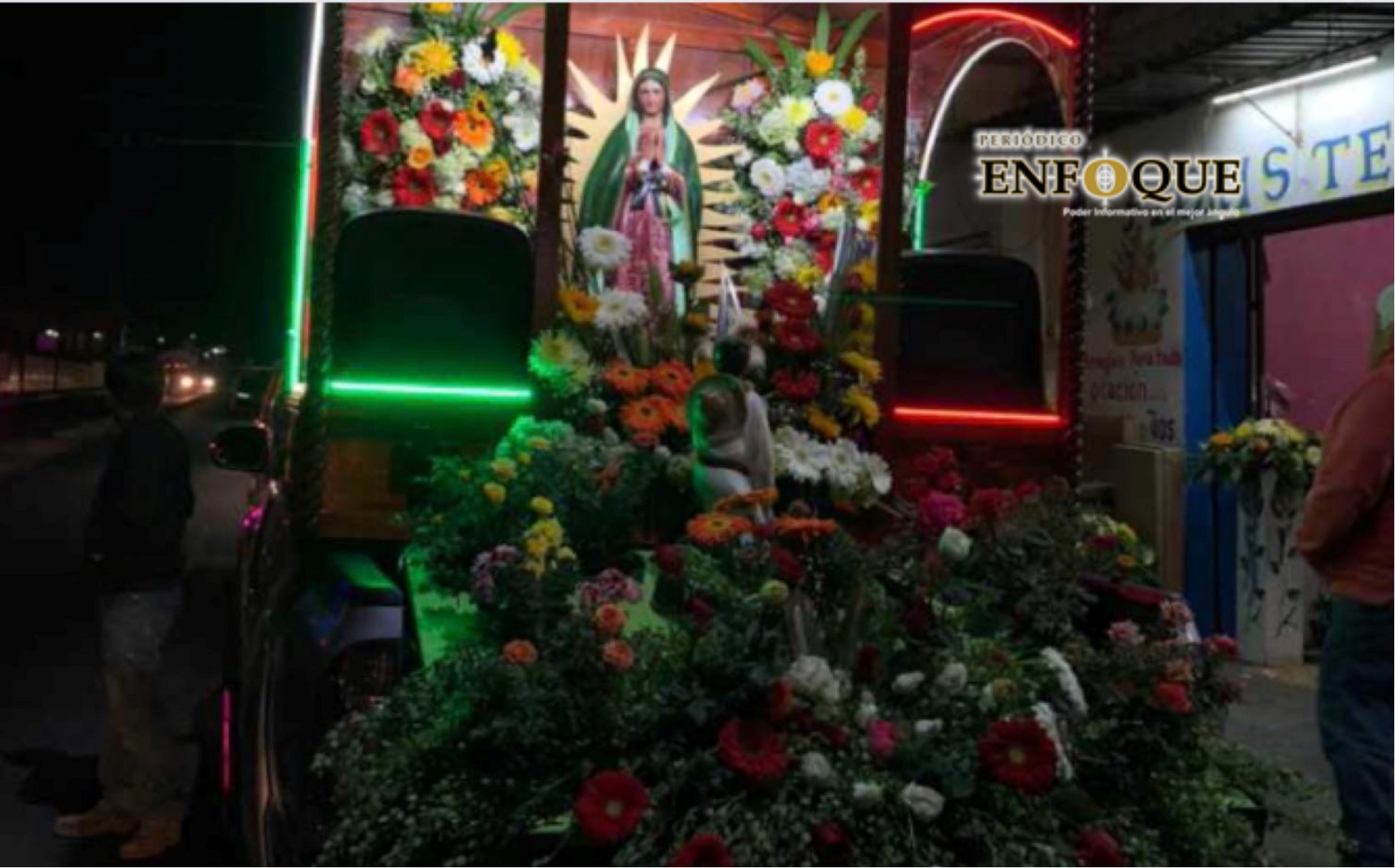 Los peregrinos son acompañados por una serie de unidades automovilísticas, sobre todo, de carros y camionetas, unidades que son adornadas con distintos motivos, según el lugar de procedencia, pero con un altar de la Guadalupana en su interior.