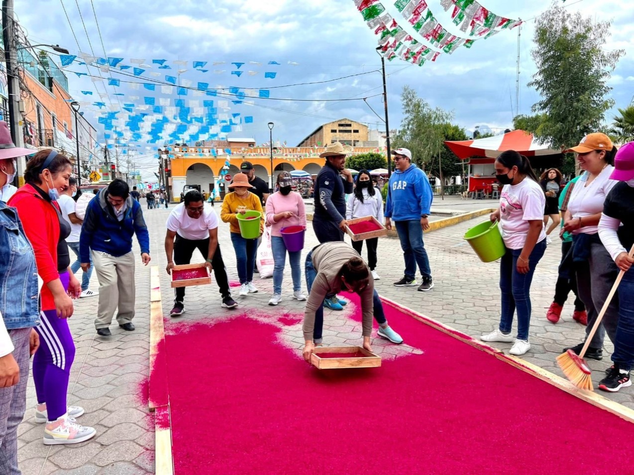 Agregó que esta actividad es “símbolo de fraternidad y de unión donde la gente se organiza y participa al hacer sus alfombras con aserrín como símbolo de veneración a la virgen” los que asisten pueden observar diversos diseños de alfombras, y que al final se realiza una misa en punto de las 7: 00 horas del día 15.